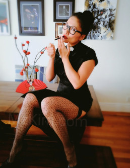 Then, there are my legs. They command attention, admiration and devotion. Ever wonder why I have so many pairs of hosiery? Ever wonder why there's an endless array of seamed pantyhose, patterned nylons, sheer and fully fashioned stockings that adorn my legs? I have admirers. Would you like to be a nylon devotee? Here's how: Throne.com/MzKim