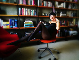 In a perfect black deep V-neck bodysuit and out-of-this-world bra, I pair them with a gorgeous new pair of shiny black pantyhose: they simply make your heart (and other things) melt. The glow, the soft, rustling sounds... this is pure pantyhose adoration.